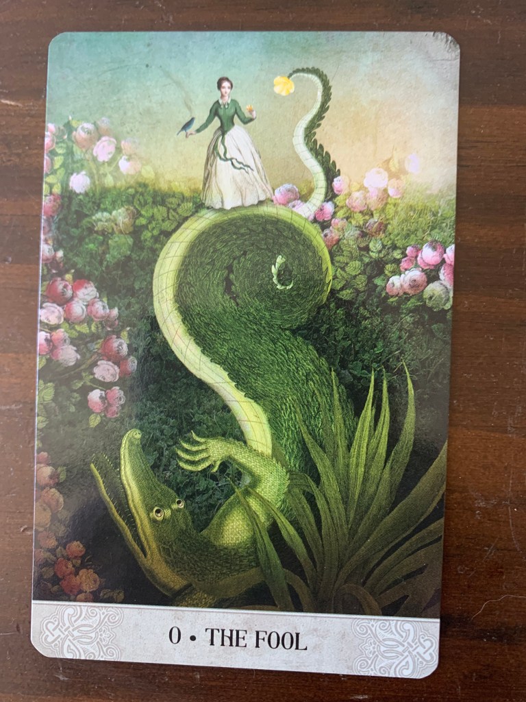 This card also seems to connect with the Osho Zen Tarot concept of the Fool in that no matter how much you are exposed to and learn, you should keep dropping this “baggage” and come back to the present moment to start anew empty handed. Over and over and over again. That is a very pure essence of the Fool archetype.