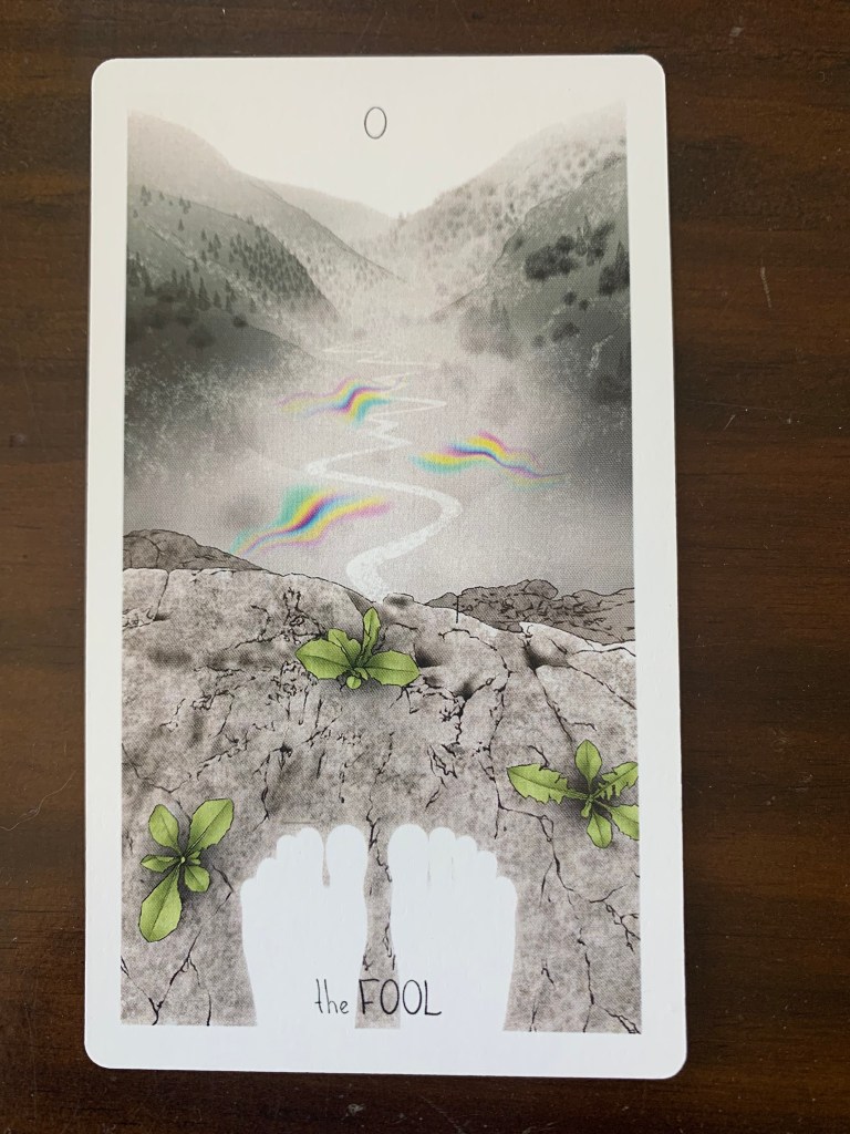 The last example I have of the Fool is from the Way Home Tarot. It has more of a first person feel to the card versus all of the others so you could even picture these are your own two feet ready to take the first steps of the journey. Can you spend some time visualizing and meditating on what this journey, this first step, or this quest is? How would this work.