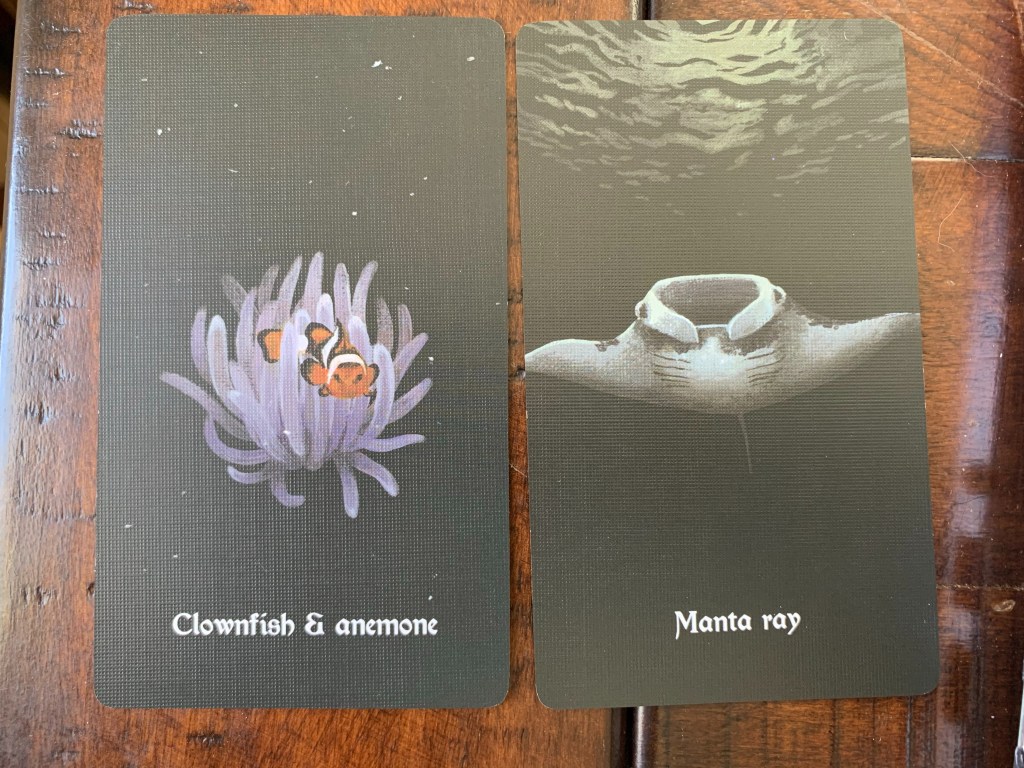 Lastly we can focus on animals or relationships in nature that show us where balance can be obtained even when it seems unlikely. For a way to represent this interpretation I turned to the Nocturna Oracle deck. It represents things in nature that are only found in the dark or are hidden behind or underneath things. At first this sounds scary or sad but in reality nature thrives in whatever way it can, and maintains balance in the face of much adversity and uncertainty. I usually find sources of hope and comfort where I least expect it in this deck.