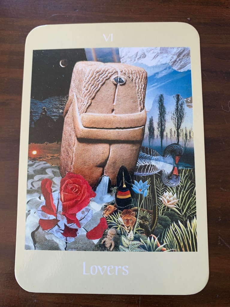In the Light Seers Tarot we again have a scene between two lovers locked in a passionate embrace. Their deep connection and pull toward each other is obvious, and this seems like an ideal situation, and the stars are aligning for them to become closer and joined more deeply, so what’s the choice or the question?
